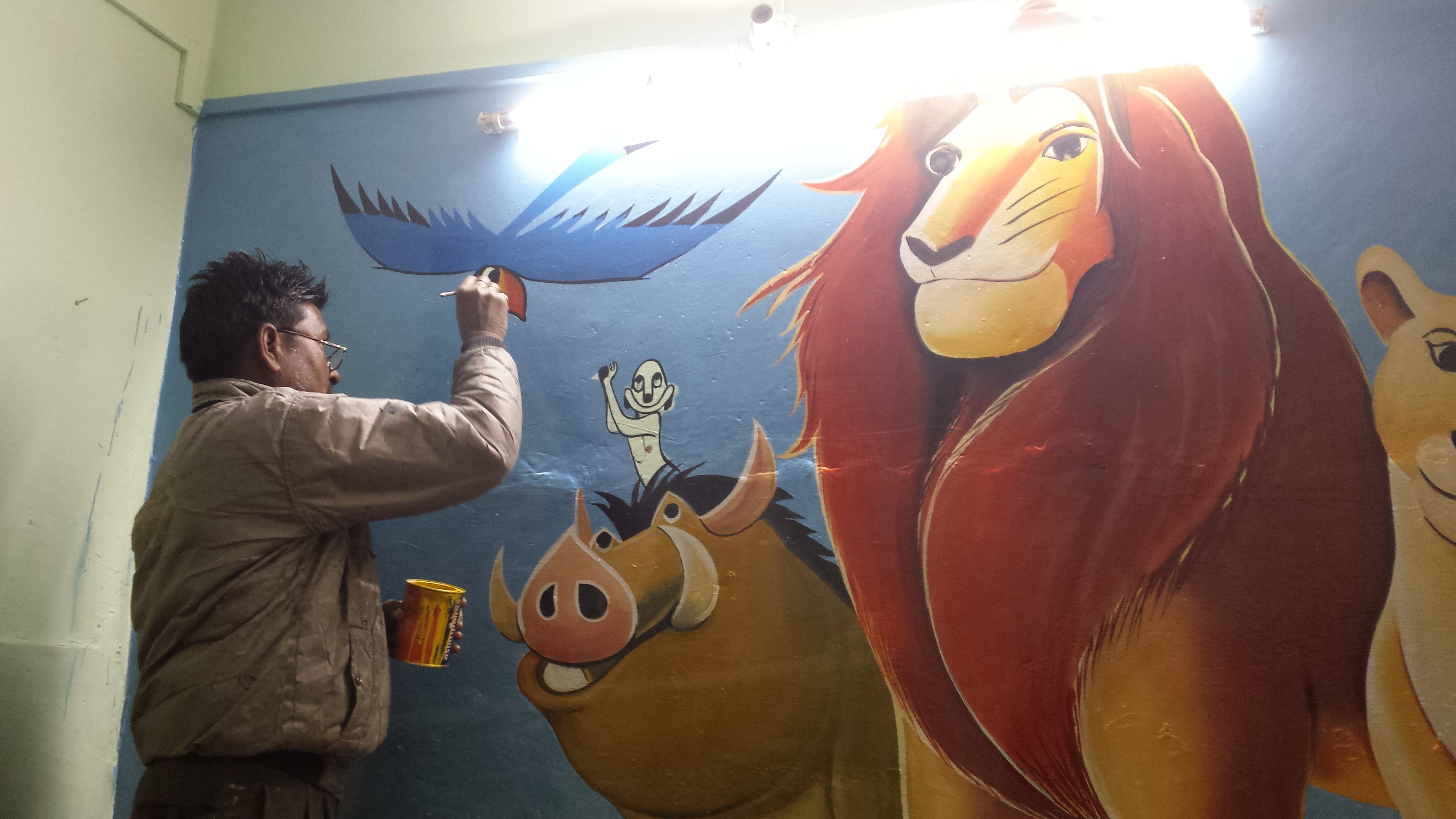 Im Flur malen die zwei Künstler noch das Bild vom König der Löwen zu Ende. Es sieht einfach toll aus und alle sind begeistert.